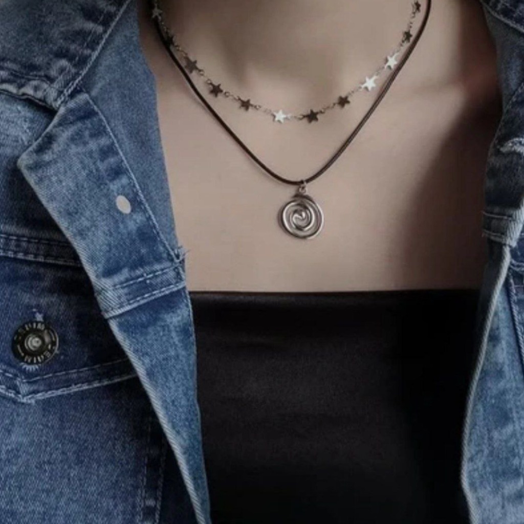 گردنبند اسپیرال بندچرمی🕸️🖤